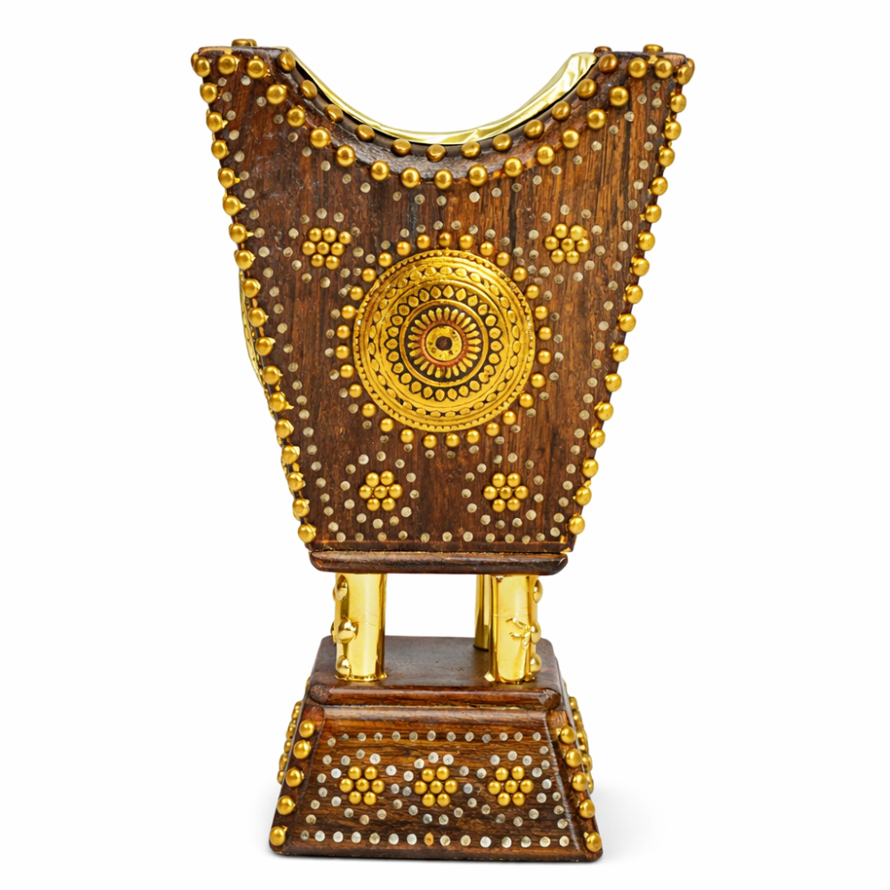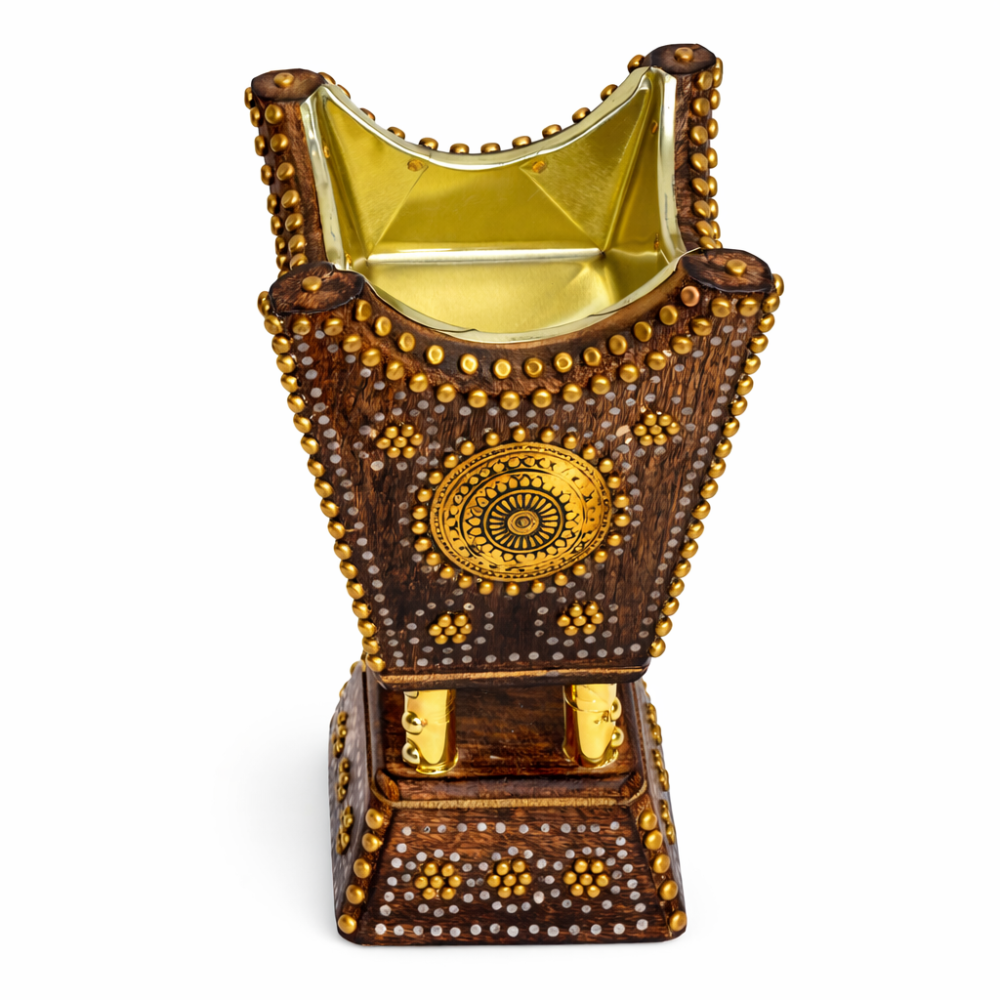 مبخرة تراثية نجدية فاخرة شغل يدوي من الخشب الطبيعي بتطعيمات نحاسية – قطعة أصيلة تضيف الفخامة لمجلسك
