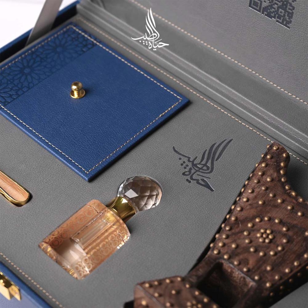 شنطة جلد كبيرة... فاخرة للإهداءات .. تأتي معها مبخرة تراثية صغيرة وكرستالة ربع تولة .. ومكان يسع ل3-4 أوقيات من البخور..
