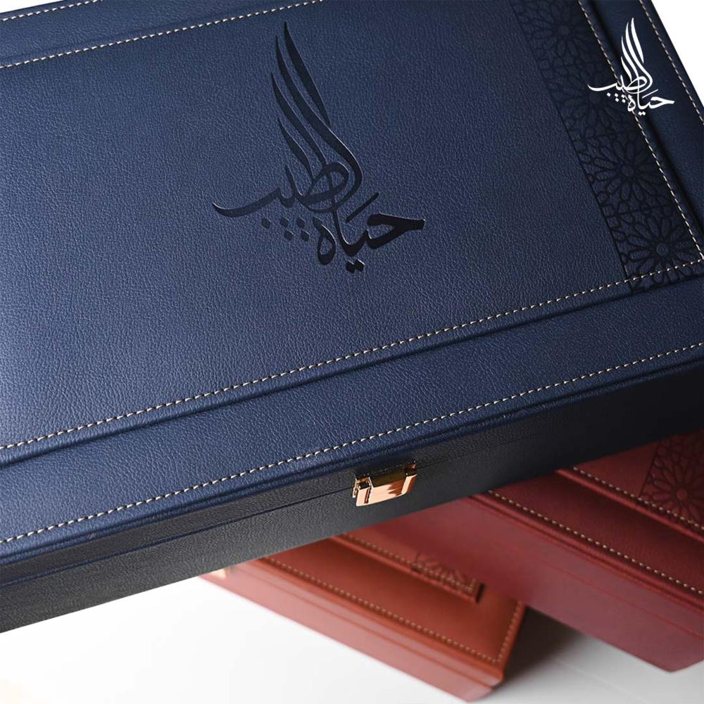 من الجلد الإيطالي والخشب،، وتطريز مميز ، صنع بحب من حياة الطيب..